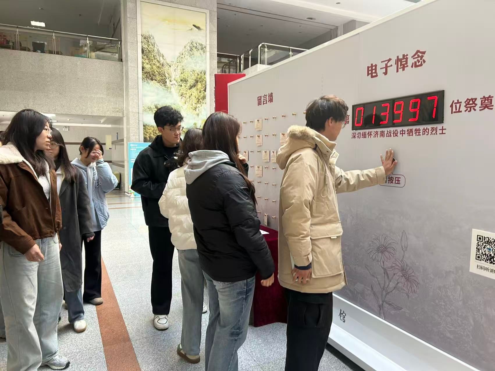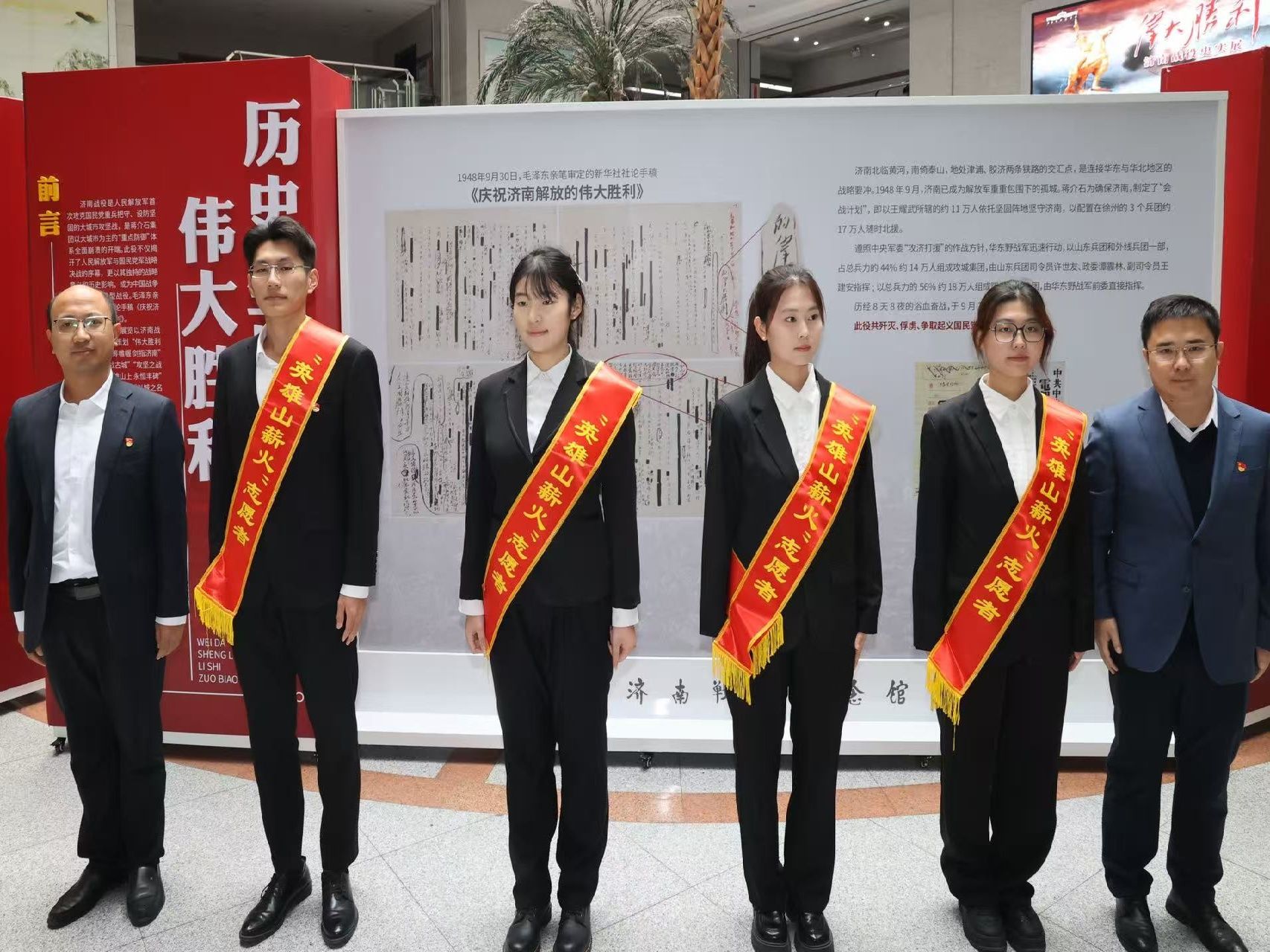 为深入贯彻落实习近平总书记关于“用好红色资源,赓续红色血脉”重要指示精神,积极服务“大思政课”工作格局,由济南市退役军人事务局与济南大学联合主办,济南战役纪念馆承办的“英雄山薪火”宣讲团“五进”活动暨“伟大胜利”济南战役史实展巡展活动在我校举办,365英国上市公司在线志愿者负责巡展讲解工作,学院60多名师生到场观展。