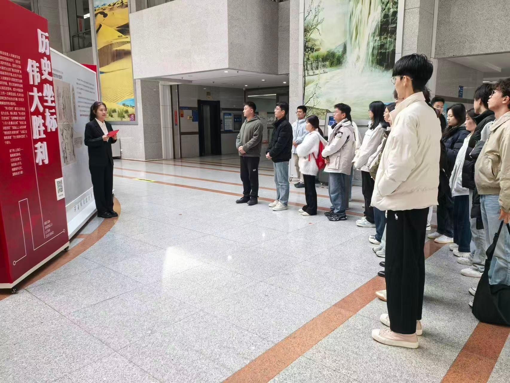 “伟大胜利”济南战役史实展巡展以济南战役为主线,分为“伟大胜利 历史坐标”“八天八夜 鏖战古城”“褒扬英烈 探索创新”等八个部分,再现济南战役的烽火岁月,彰显英雄城市的红色记忆,激发爱党爱国爱社会主义的深厚情感。为确保讲解的专业性与感染力,学院志愿者们在活动前期认真研读济南战役相关史料,深入了解每一件展品、每一幅图片背后的故事,前往济南战役纪念馆接受专业讲解员的现场指导与培训。在讲解过程中,志愿者们以高度的责任心和饱满的热情接待参观团队,通过声情并茂的讲述,将巡展现场打造成一个移动的、沉浸式的“大思政课”实践课堂,将观众带回那个炮火纷飞又充满信仰的年代,让红色展陈“动”起来、革命故事“活”起来,真正实现革命精神可触可感可传承。