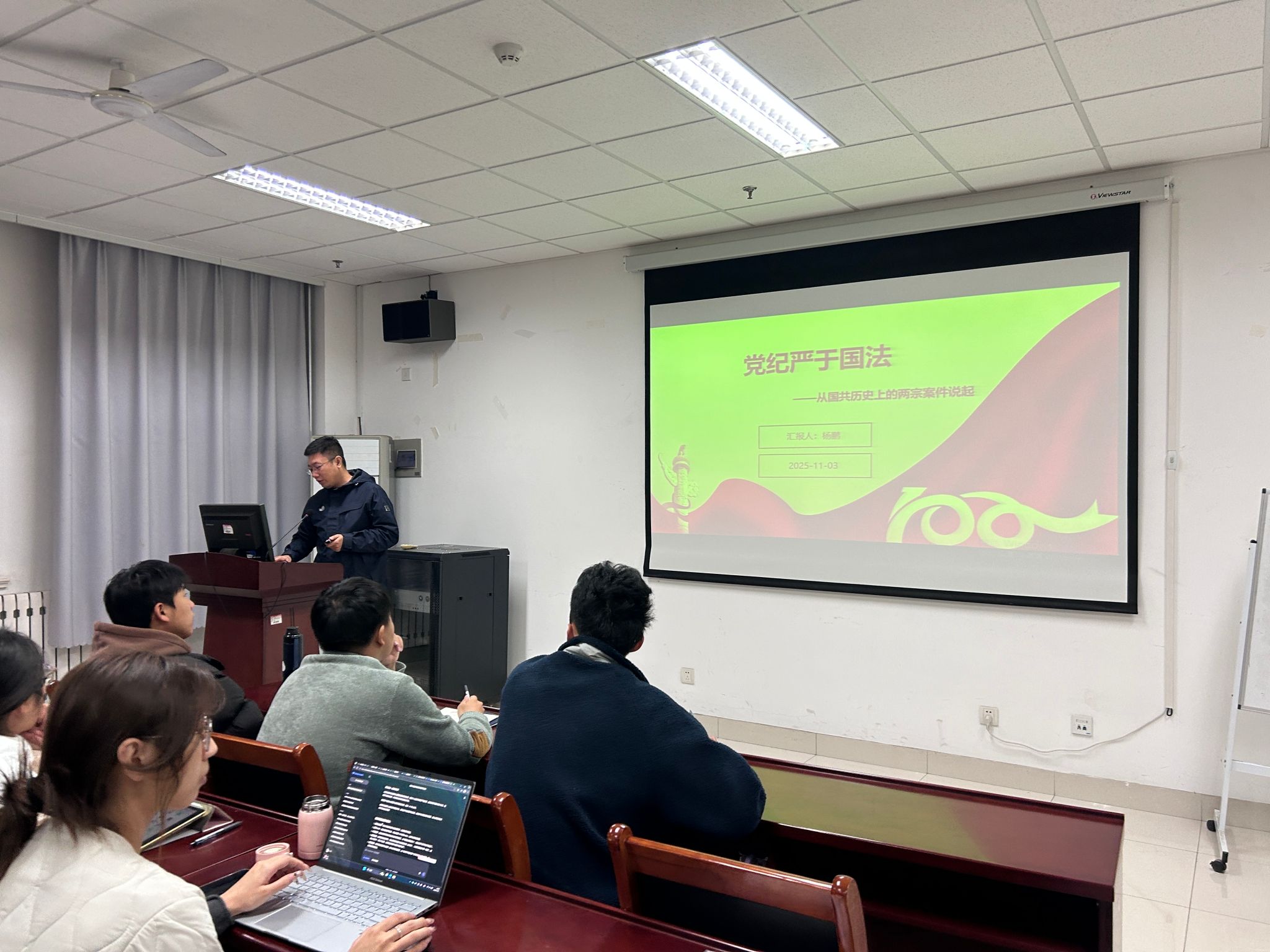 张宝华以“学习《中国共产党纪律处分条例》”为主题,结合近年来全面从严治党典型案例,深入剖析反腐败斗争的长效机制。她强调,同学们要从思想源头抵制诱惑,严守廉洁底线,将纪律意识内化为行为准则。