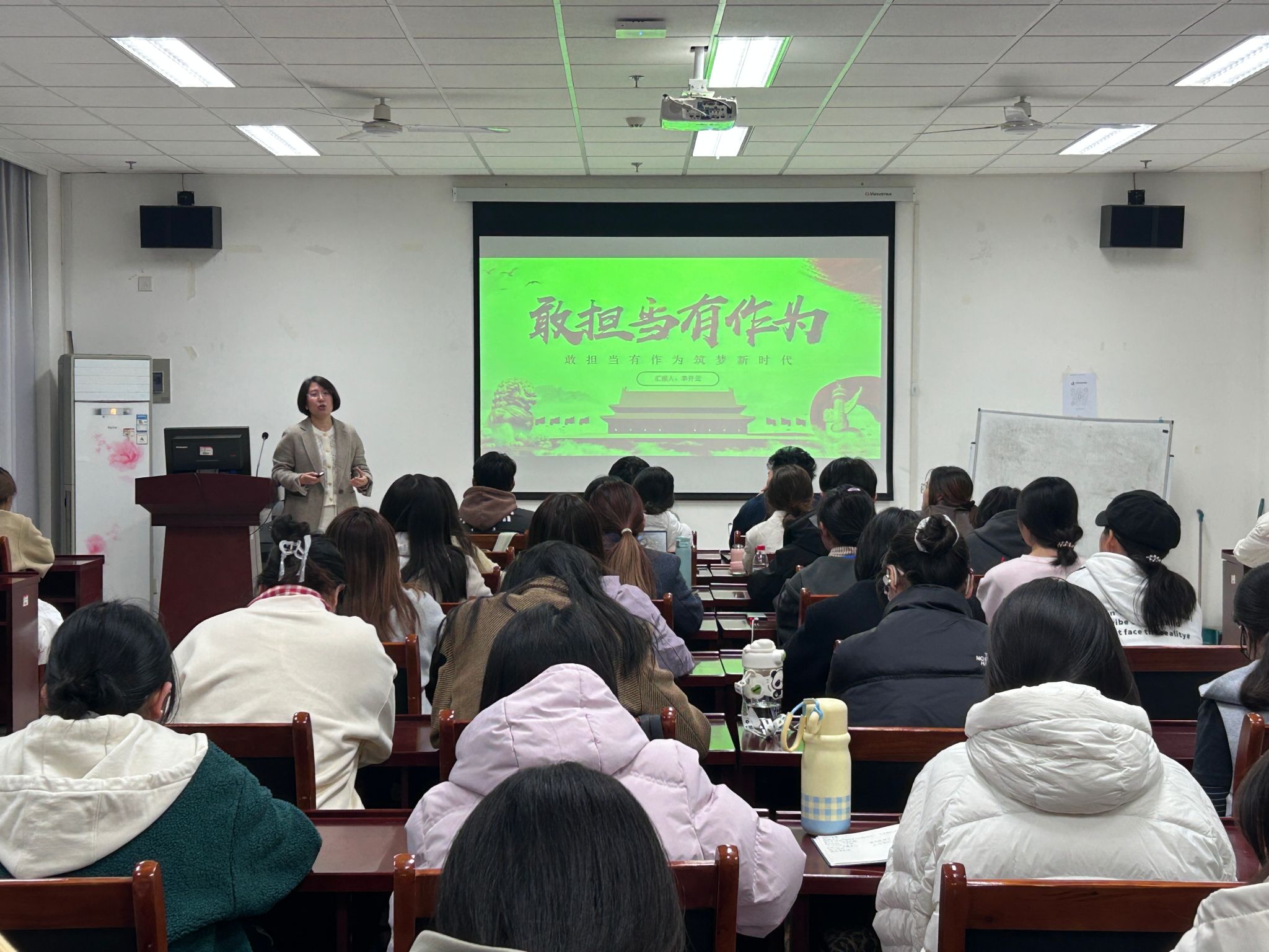 李开云以“敢担当有作为,筑梦新时代”为主题,通过何为“担当作为”“担当作为是党员的基本素质”“新时代党员干部如何担当作为”三个章节,阐释了担当精神的内涵,引导学员在专业学习、社会服务中主动扛起责任,以实干实绩向党组织靠拢。