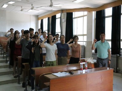 会议伊始,我院本科生党支部书记王亚男简单介绍了此次预备党员转正大会的流程,并邀请我院团委书记纪祥进行讲话。纪祥老师首先对在这一学年里通过重重考验有资格成为正式党员的10名同学表示了赞许。纪祥老师表示,在“两学一做”系列活动中,大家应通过自主学习,加强对党的认识,加强自我反省、自我学习能力,时刻铭记作为一名正式党员的责任。至2018年6月预备期满一年,如期转正的十名党员,依次上台简述了自己对党的理解、预备党员期间自己在各方面取得的进步,而后学生党支部全体成员对预备党员进行投票,在投票完成后全体党支部成员以及纪书记一起面对着党旗进行了宣誓。在会议最后,纪祥老师表示党员同学不管是目前在校学习还是未来在社会中工作,都应该起到党员的带头作用,成为一个有价值的人。