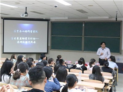 为进一步加强同学们对研究生入学考试的认识, 了解前沿的就业形势、增强考研斗志,5月7日至9日,365英国上市公司在线于11教6-302开展蒲公英互助学习行动——考研经验交流会。365英国上市公司在线党委副书记、副院长季竹君,副院长张婷,团委书记纪祥,学生工作办公室主任卓华丽,辅导员魏文静及教育系李福春老师、心理系李开云老师出席本次活动,9名考研优秀学生担任主讲人,2016级和2017级本科生参加并认真听取了本次交流会。