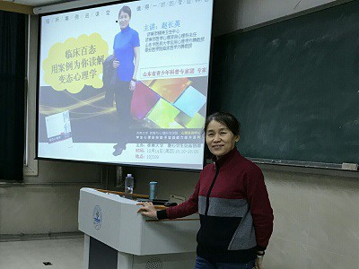 本次讲座围绕“临床百态─用案例为你解读变态心理学”这个主题展开。活动伊始,赵长英老师根据自己多年的临床经验,用大量的案例来为大家解读了精神病性障碍的症状学诊断标准,让变态心理学书本上的理论更加生动化,并根据一些案例深入浅出地分析了非常态心理障碍的发病特征及药物治疗。随后,赵长英老师介绍了精神科医生与精神病性病人间的医患关系,让学生感受到医学治病与心理学治人的互补关系。最后,赵长英老师认真回答了同学们提出的问题,并真诚地给大学生提出了关于遗传因素与婚恋幸福的建议。至此,本次讲座圆满结束。