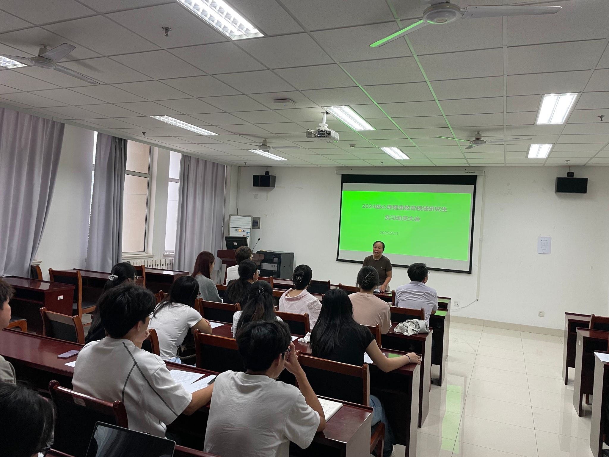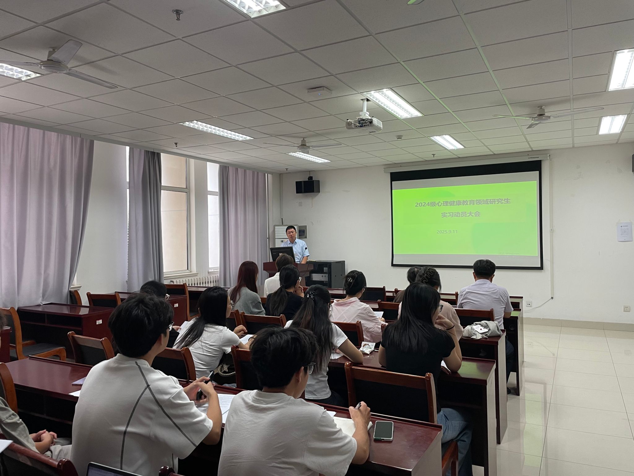 首先,杨鹏从重视实习工作的重要性、遵守实习纪律、认真完成实习任务三个方面对2024级心理健康教育专业学位研究生实习工作做了总体要求。他强调,教育实习是教育硕士培养过程中的一个重要环节,希望同学们充分重视实习,认识到实习不仅仅是知识与技能的检验,也是综合素质的锻炼,做到以行验学;在实习过程中要遵守实习纪律,注意人身、财产、交通安全,树立济南大学良好形象;同时把握住在中小学教学单位实习的良好机会,结合实习内容,完成毕业论文选题、问卷收集、调研报告撰写等工作。
