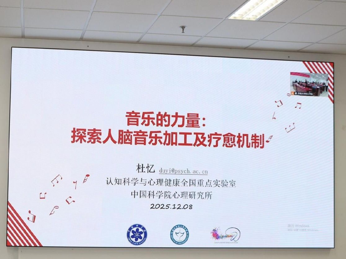 下午,学术交流热度持续攀升。西南大学党委常委、副校长邱江教授以《语义网络的中枢概念对创造性思维的影响及其认知神经机制》为题,结合自身团队研究成果,深入剖析了创造性思维的神经机制,为青少年创造性培养提供了科学依据;中国科学院心理研究所杜忆研究员带来《音乐的力量:探索人脑音乐加工及疗愈机制》报告,依托认知神经科学技术与计算建模成果,展现了音乐在脑功能修复与心理疗愈领域的独特价值;北京大学心理与认知科学学院彭玉佳教授作《从计算视角理解社交焦虑:社会认知过程中的认知偏差及人工智能赋能的评估》报告,跨界融合计算精神病学与人工智能技术,为社交焦虑的评估与干预提供了创新方案。各场报告均设置互动环节,师生们踊跃提问,专家耐心答疑,现场学术氛围浓厚。