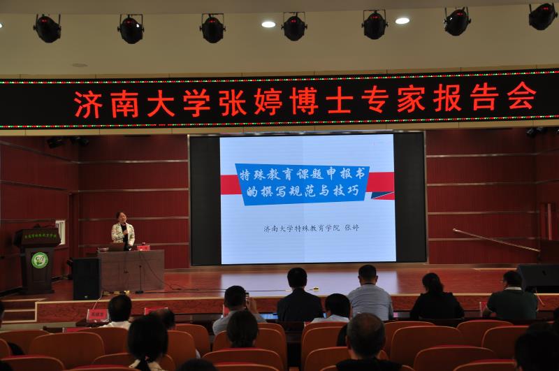 最后,张婷副院长结合国家基础教育教学改革成果和山东省基础教育教学改革项目等最新教科研信息,为枣庄市各区(市)特殊教育学校(中心)校长、全体教师做了题为《特殊教育课题申报书的撰写规范与技巧》精彩报告。