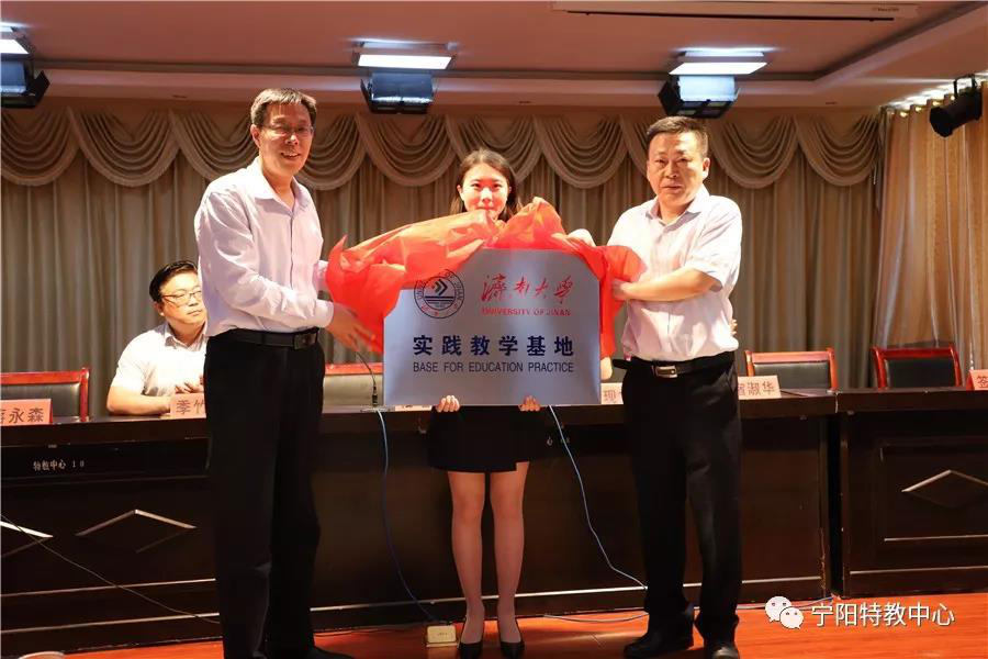 宁阳县教体局高度重视本次签约揭牌仪式活动,王现文副局长在讲话中充分肯定了宁阳特教中心在教学、管理和科研等方面取得的成绩,要求各位老师要根据特殊儿童的需要不断提升自己的业务能力,以帮助这些特殊孩子早日回归主流社会,实现自己的人生价值。王现文副局长还指出,实践教学基地的建立可以促进济南大学特殊教育与宁阳县特殊教育的无缝对接,实现高校与地方的互补合作,意义深远。