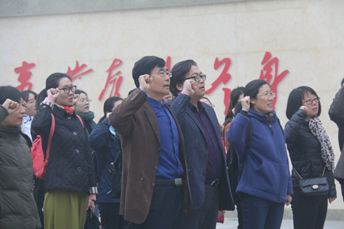 参观结束后,全体师生党员来到初心广场,在学院党委书记牛瑞斌的带领下同举右手重温入党誓词,重温当年入党时的决心与信念,牢记自己的初心和使命。随后,来到中共长清县委旧址,参观了四个展室,了解了中国共产党领导长清人民艰苦奋斗的革命历程。