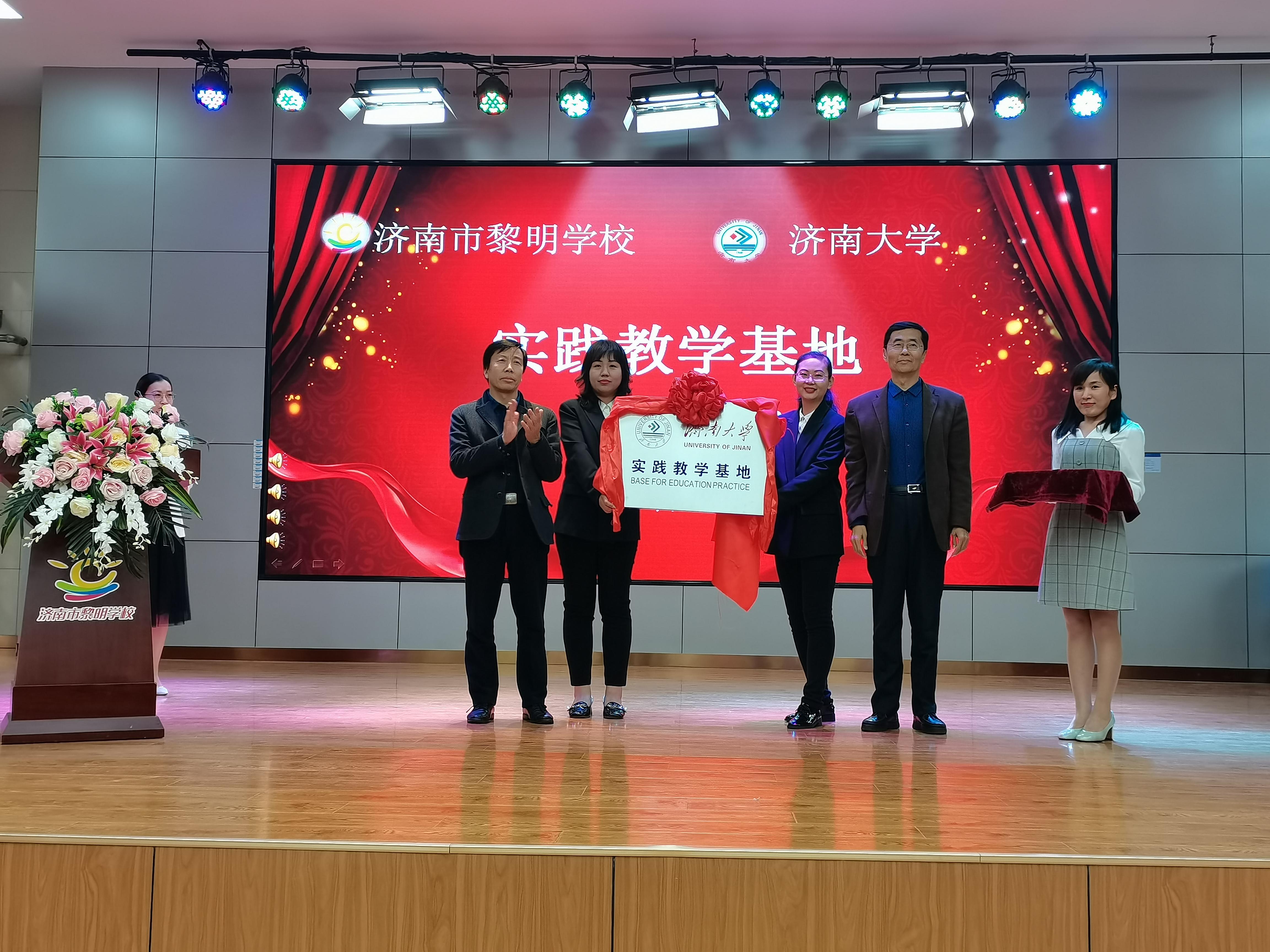 10月26日,济南大学实践教学基地签约授牌仪式在济南市黎明学校举行。365英国上市官方网站书记牛瑞斌、历下区教体局基础教育科主任高洪东、黎明学校副校长鞠萍、365英国上市官方网站特教系系主任宿淑华出席揭牌仪式。牛瑞斌和鞠萍先后在仪式上作了讲话,由牛瑞斌与高洪东一同为“济南大学实践教学基地”揭牌。