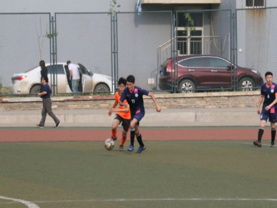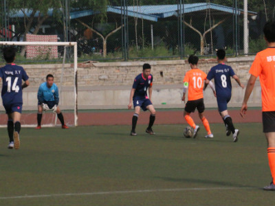 为了避免赛中受伤,我院运动员到场先进行了热身活动,并相互鼓励,商量对策。比赛伊始,运动员们就迅速调整状态,心无旁骛投入比赛中。面对商学院强劲的对手,运动员们上下齐心,势如破竹,两队皆有不凡的实力。商学院先发制人,夺下一分,我院运动员也并未气馁,几次有力的进攻后11号队员屠浩扬所向披靡突破对方防线以1:1齐平,结束上半场。暂且休息后,第二场比赛拉开序幕。场下的观众助威声鼓舞着场上奔驰的运动员,比拼激烈异常。最后比赛以1:2告终,我院以一分之差与胜利失之交臂。但我院运动员并未此心灰意冷,赛后积极总结该场出现的问题,争取在往后的比赛中荣登榜首。