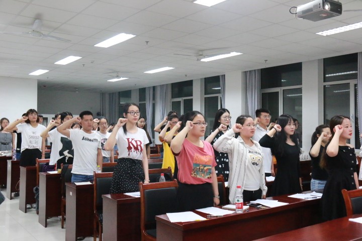 随后,支部书记甄馨带领党支部全体与会成员面对着党旗进行庄严宣誓。