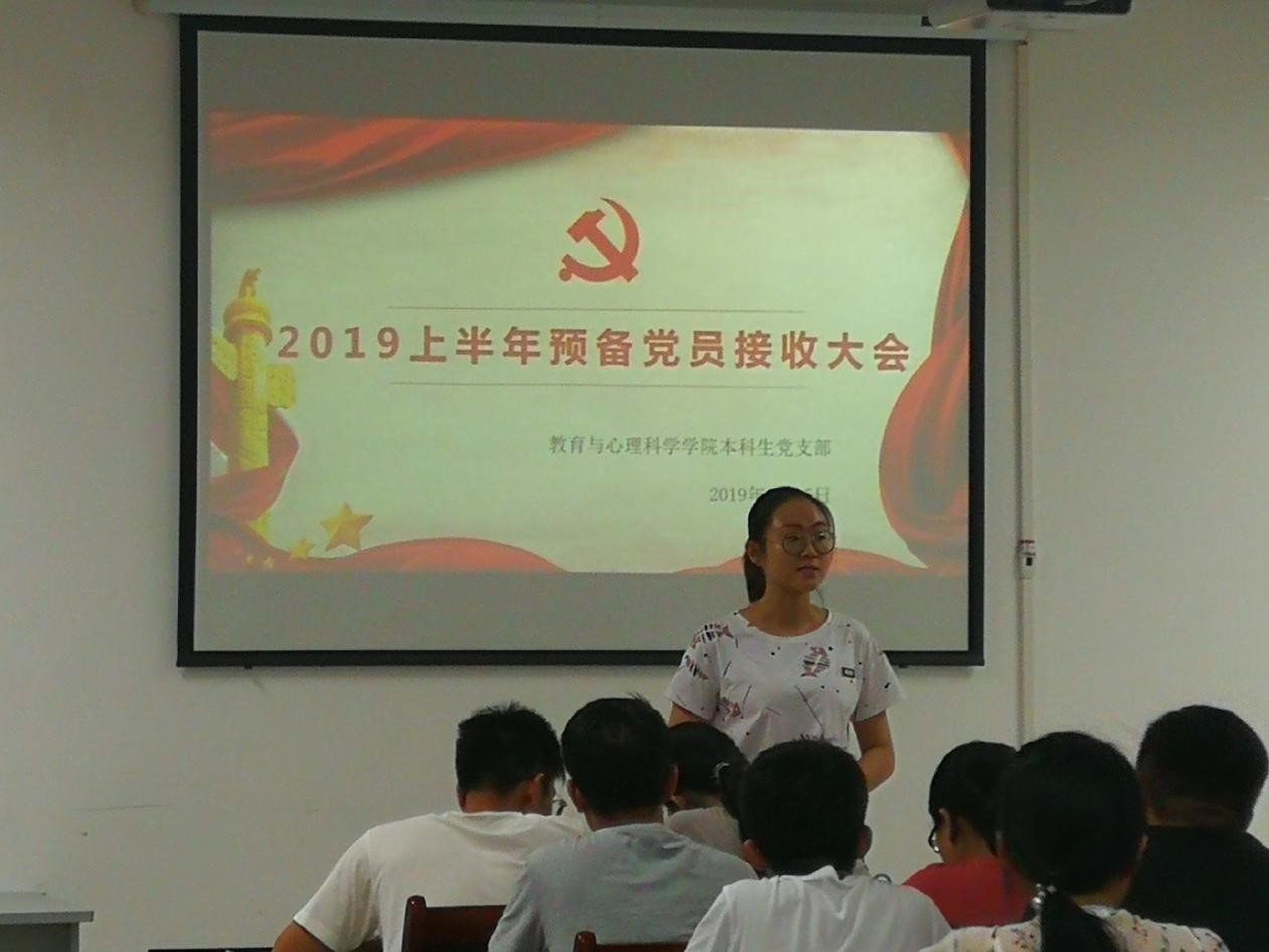 会议伊始,本科生党支部书记甄馨宣布了到会情况,介绍了出席人员和接收预备党员程序,具体按照以下几个流程进行:一、发展对象汇报有关情况,以及需要向党组织说明的问题;二、入党介绍人介绍有关情况,对其能否入党表明意见;三、支部委员会报告审查情况;四、与会党员充分讨论,采取无记名投票方式进行表决。