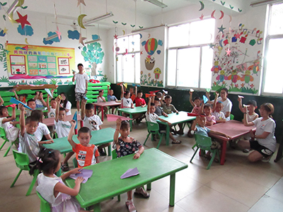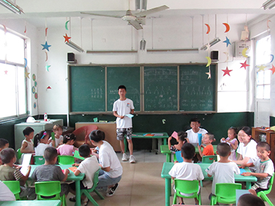 骄阳似火,蝉鸣震野。7月15日午后,进行了短暂的休息后,365英国上市公司在线的志愿者们再次进入土安小学教室的大门,向大班的小朋友们进行绘画与手工课堂的授教。