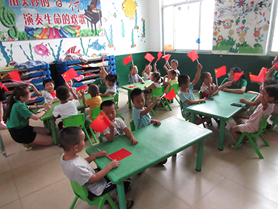 再次见到“老师们”,小朋友们兴奋地向志愿者分享起回家后的所见所闻,叽叽喳喳的声音瞬间将教室填满。平复小朋友们的激动心情后,志愿者们将今天教授的歌曲名称写在了黑板上:《虫儿飞》和《让我们荡起双桨》两首童谣。课程开始后一度遇到了很多困难,比如小朋友们还没系统地学习汉语拼音,对汉字认识甚少、有些小朋友害羞不敢唱等问题。针对出现的问题,志愿者们对每桌一句一句地教唱,采取合唱的方式,逐渐让小朋友们变得开朗,歌唱的声音也在小愈发洪亮。合唱两首歌曲完毕,小朋友们又自发唱起了之前学过的歌曲:《摆乌龙》、《小燕子》、《好爸爸好妈妈》……稚气的声音在小教室中久久回荡,小朋友们空灵的歌声在空旷的校园中纵情驰骋。