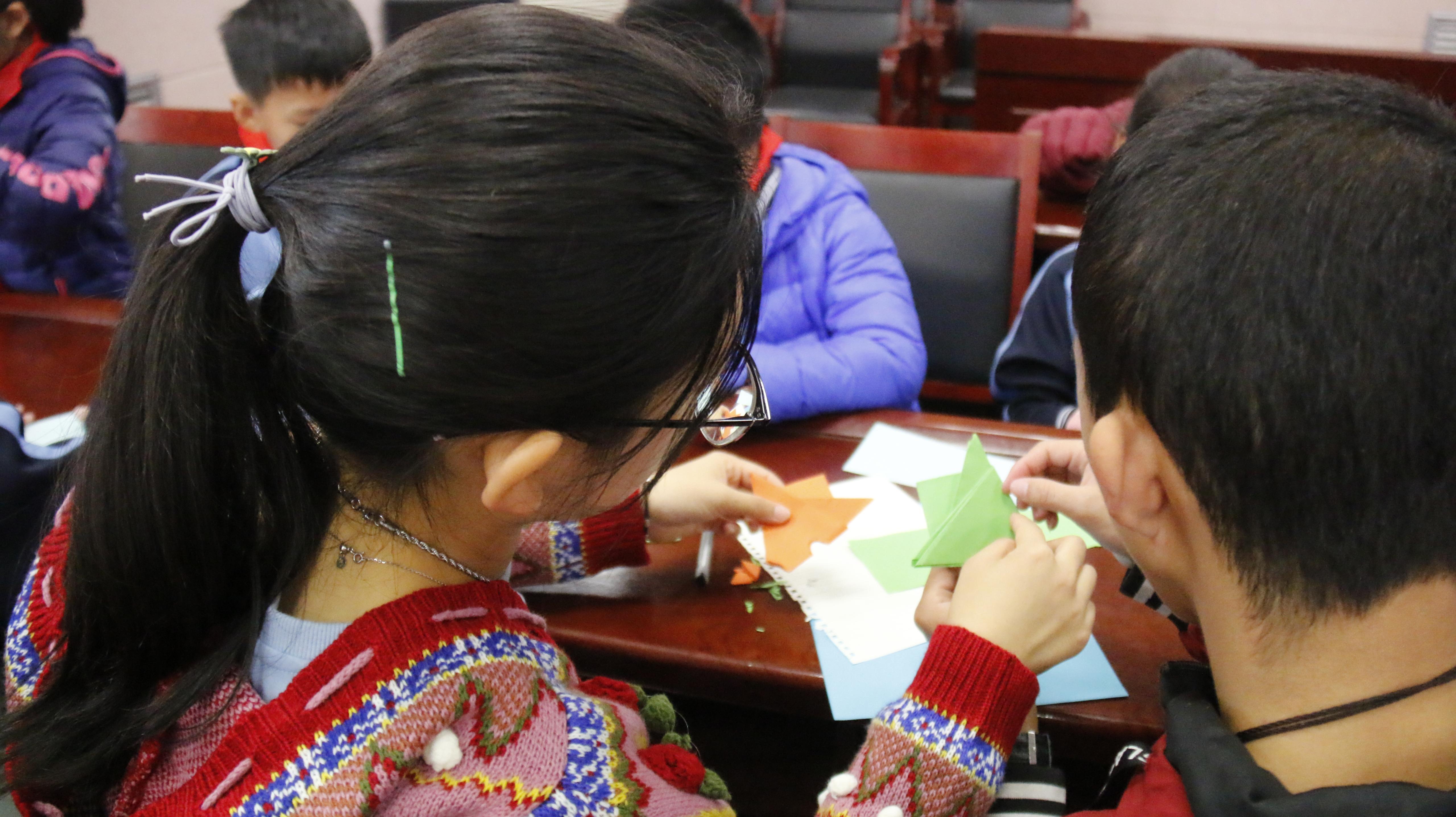 活动伊始,志愿者们和孩子们一起观看影片,孩子们认真观看,时不时地与身边小伙伴交流感想。观影结束后,志愿者将孩子们进行简单分组,开展折纸活动。志愿者们与孩子们密切互动,孩子们也积极动手,一张张五颜六色的手工纸在孩子们的手中奇迹般的变化成造型别致、美丽可爱的手工作品。在折纸过程中,志愿者们与孩子们也进行了密切交流,用快乐和爱心感染了孩子们,近距离的沟通也让孩子们脸上绽放出灿烂如花的笑容,志愿者们也收获了满满的成就感。