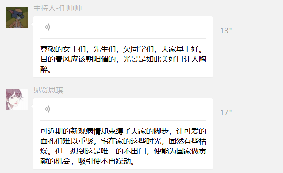 3月29日上午九时,志愿者们用线上语音报幕的方式拉开了线上表演的序幕,社区居民跃跃欲试,能歌善舞,小区居民张瑞萍表演舞蹈《梅花泪》为我们带来了春的气息;秋竹等七名志愿者的诗朗诵《献给志愿者的诗》,歌颂了一线工作人员们无声的大爱;社区居民刘英则向大家展示了原创的艺术摄影作品,用相机记录下身边点滴,定格美好回忆;社区居民张瑞红表演的舞韵瑜伽《青城山下白素贞》翩如兰苕翠,婉如游龙举,也令大家交口称赞。当真是“看今朝舞低杨柳楼心月,歌尽桃花扇底风”,一度将线上表演推到了高潮。志愿者们也各显神通,将当代大学生积极进取的精神风貌以及多姿多彩的生活表现的淋漓尽致,大家将表演与对抗疫期间工作者和志愿者的感激结合起来,表达了心中深深的敬佩之情。其中由教心学院学子陆彤演唱的歌曲《房间》,高欣宇带来的《平凡天使》以及李昊霖精心制作的配乐视频《听我说谢谢你》等节目都收到了社区居民的一致好评。演出临近尾声,教心学院文艺部的同学还献上了精心准备的曲目——《天使的身影》,以视频的方式教社区居民们演唱。最后,鲁贤社区的马振书记也通过文字形式表达他的欣喜之情“希望我们同舟共济,共同打赢这场防疫战,下一步,社区将联合济南大学一起,为居民们组织更多精彩的活动,让我们携手并进,营造一个多彩、和谐、充满活力的社区!”