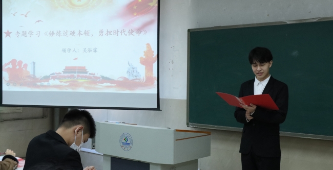 在“青春心向党,奋斗新华章”党史宣讲环节,2022年山东省青年马克思主义者培养工程高校班学员、教管2001班团支部书记王玉媛携学员们回顾党的百年历程。她强调,学员要不驰于空想,不骛于虚声,躬耕磨砺,攀登奋进。