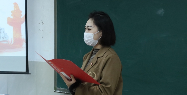 第十二期“青马班”新成员代表莫心雨发言。她讲述了自己参加青年马克思主义者培训班的目标和方向,并将其视为一种荣耀,一份责任,表达内心能有所获、有所成的愿望。